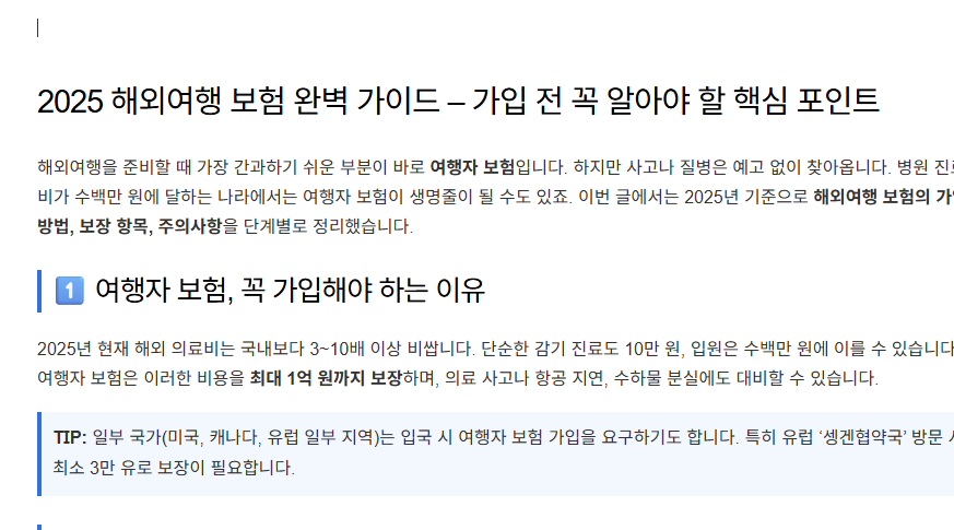 해외여행을 준비할 때 가장 간과하기 쉬운 부분이 바로 여행자 보험입니다. 하지만 사고나 질병은 예고 없이 찾아옵니다. 병원 진료비가 수백만 원에 달하는 나라에서는 여행자 보험이 생명줄이 될 수도 있죠. 이번 글에서는 2025년 기준으로 해외여행 보험의 가입 방법, 보장 항목, 주의사항을 단계별로 정리했습니다.