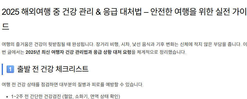 2025 해외여행 중 건강 관리 & 응급 대처법 – 안전한 여행을 위한 실전 가이드